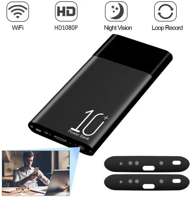 Portable multi-function mobile power bank + mini WiFi camera - 10000mAh power bank + 1080p HD mini camera, support remote viewing, suitable for home, office, travel and other scenarios
