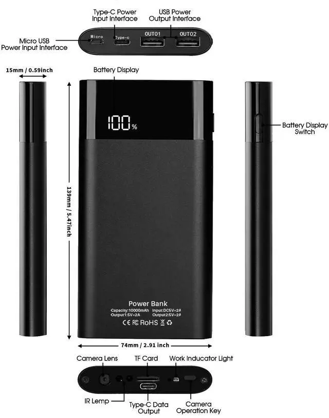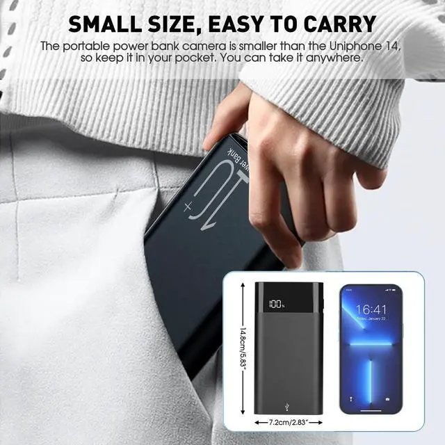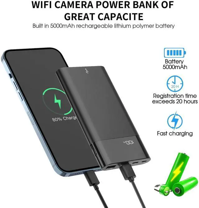 Discreet Design: Features an appearance identical to ordinary mobile power banks, integrating a built-in high-definition camera for versatile use in home, office, or warehouse settings.