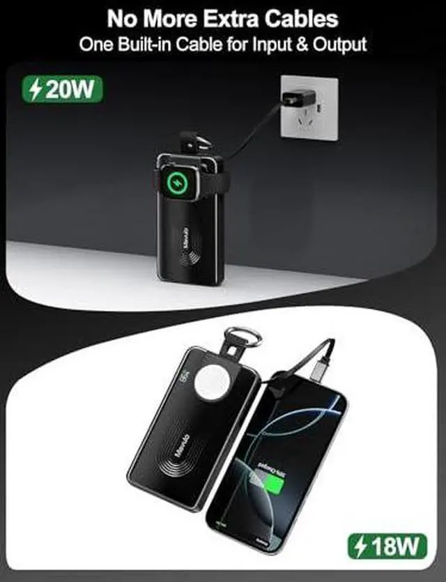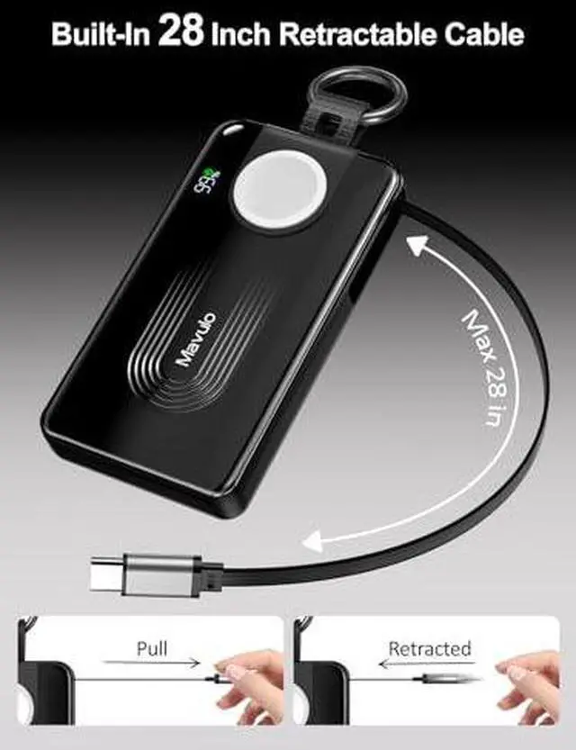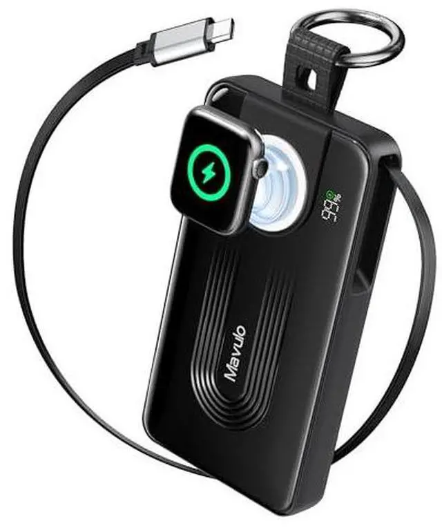 • One Device to Charge It AllThe Mavulo portable charger has a built-in magnetic wireless charger for the Apple Watch Series and a retractable Type-C cable, allowing you to charge your phone and watch simultaneously