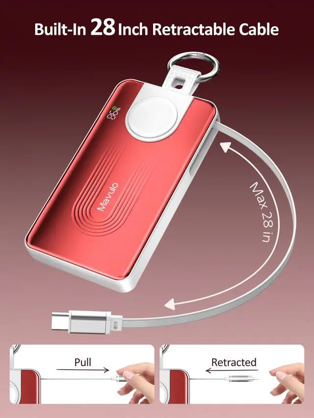 • World's First Dual-Function Retractable CableThe built-in, retractable USB-C cable offers two-way 18W PD fast charging, powering up your phone and recharging the Mavulo power bank with equal speed. This means ultimate convenience and no extra cables to carry
