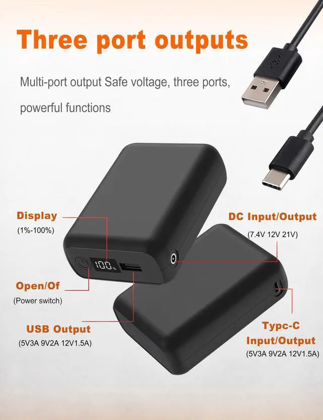 ./ Heated vest battery pack, LED display, power bank with USB/Type-C/DC 3.8 output and LED display, portable charger, compatible with heated vests, jackets, pants