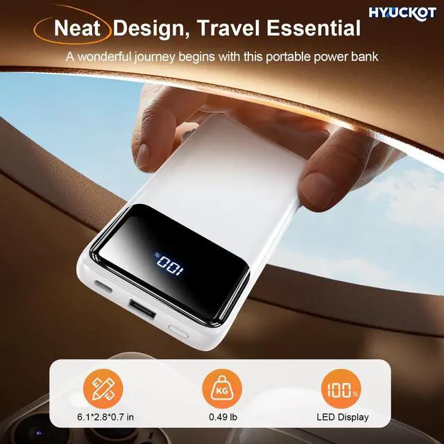 Up to 15W fast charging ensuring your phone tablet earbuds or smartwatch all get efficient reliable power without waiting in line to charge. [Ultra-Slim 10000mAh Battery Pack Power Meets Portability] Designed for everyday mobility this 10000mAh portable phone charger delivers impressive power in a remarkably slim body. Measuring just 0.7 inches thin and weighing only 8 oz it slips effortlessly into any pocket or bag. Enjoy reliable backup power on the goapproximately 2.5 charges for iphone 15 and 2.3 charges for s23. Compact lightweight and built to keep you powered wherever the day takes you.
