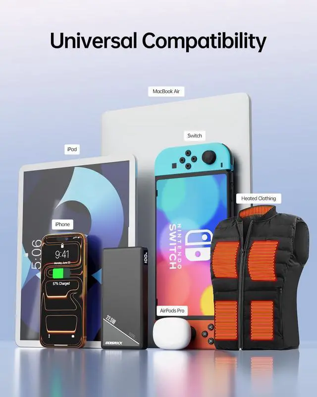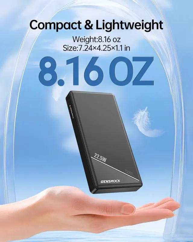 True 22.5W Ultra-Fast Speed: In a rush? Get your iPhone from 0% to 55% in just 30 minutes. The perfect time-saving portable charger for busy commuters and outdoor travel. Compact & Travel-Friendly DesignWith its slim profile ( 7.24 × 4.25 × 1.1 ) and lightweight build ( 0.51 lbs) this power bank slips easily into any pocket or bag. The perfect travel essential for commuters travelers and anyone on the move who needs reliable portable power. Dual Output Charging portsCharge two devices simultaneously with the 22.5W USB-C port and 5V/3A USB-A port. This portable phone charger is perfect for sharing power with friends or keeping multiple devices charged during trips flights or daily adventures. Certified Safe & ReliableRest easy with full FCC CE UN 38.3 ROHS and UL safety certifications. This portable iPhone charger with fast charging provides complete protection against overcharging overheating and short circuits for worry-free use. Your Everyday Power SolutionFrom business trips to family vacations this portable charger keeps your devices powered wherever you go. Backed by a 12-month warranty and dedicated customer support it's the reliable power bank you can count on for all your devices.
