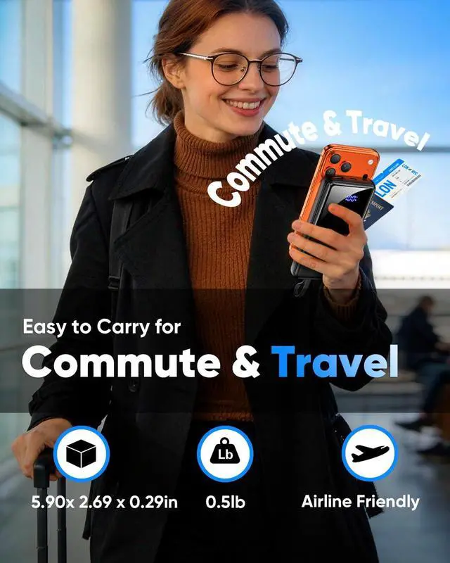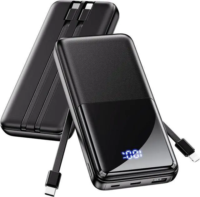 Built-in Cables >>>: PB-08 battery pack has 1* iOS cable 1* Type-C cable 3* Charging ports(USB-A Type-C Micro) which supports charging almost all smart devices on the market. Widely compatible with iPhone 17/16/15/14/13/12 series iPad series S23 S22 S21 S20 series Google series and other smart cell phones tablets or electronic devices. No need to carry multiple cables during your trip anymore! (Adapter/ Wall Charger are not included) (Airline-friendly)Ultra-Compact 15 000mAh