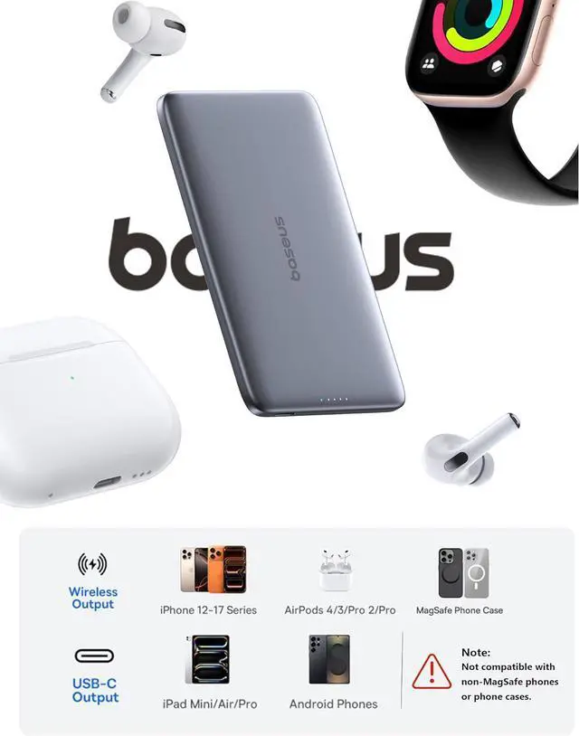 About Basues: Baseus hold 2 100+ global patents and won 170+ Industrial design awards. Trusted by over 180+ countries and over 300+ million users with up to 99.98 % customer happiness. Reflecting our commitment to quality and seamless user experiences. Our portable charger iphone meet the highest global standards certified by FCC UL TüV DOE CEC UN IEC and RoHS ensuring safety energy efficiency and environmental compliance.?? Baseus Promise to