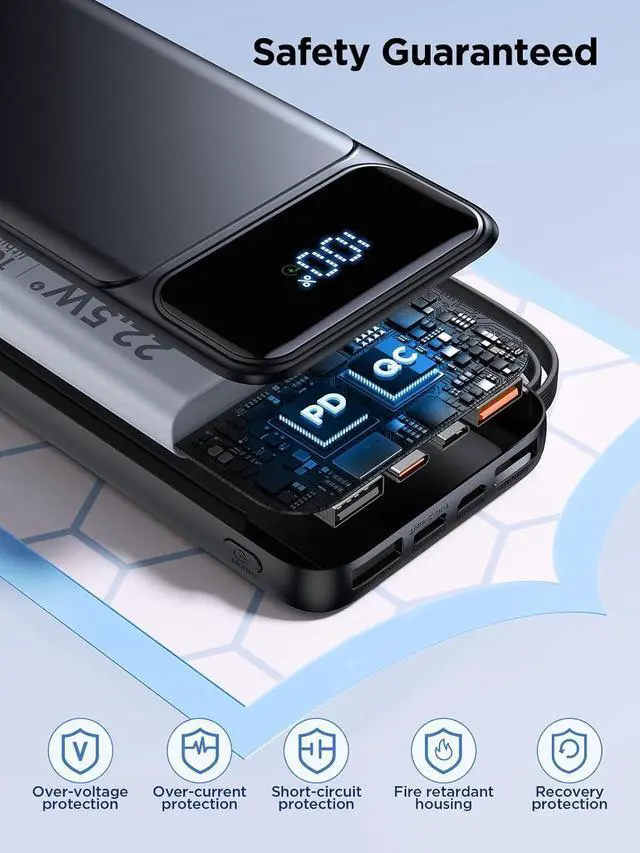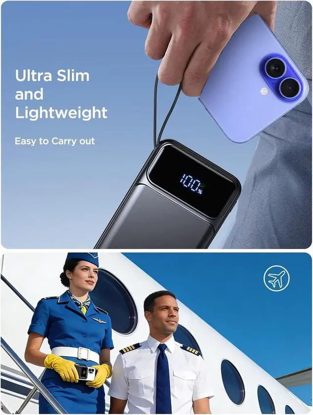 It fits easily into your pocket handbag or backpack and includes a handy lanyard for added portability. Perfect for travel camping hiking concerts gyms races home office car vehicle and emergency situationsLED Display for Precise Power MonitoringThe built-in high-definition LED display provides an accurate real-time percentage of the remaining battery life down to 1% as well as the current charging status. This ensures you're always fully aware of your power bank's condition at a glance. No more guessing when its time to rechargeplan your charging needs convenientlyAirline-Approved and Comprehensive Safety ProtectionAioneus portable charger complies with rigorous aviation safety standards and incorporates 10 layers of advanced safety protection.