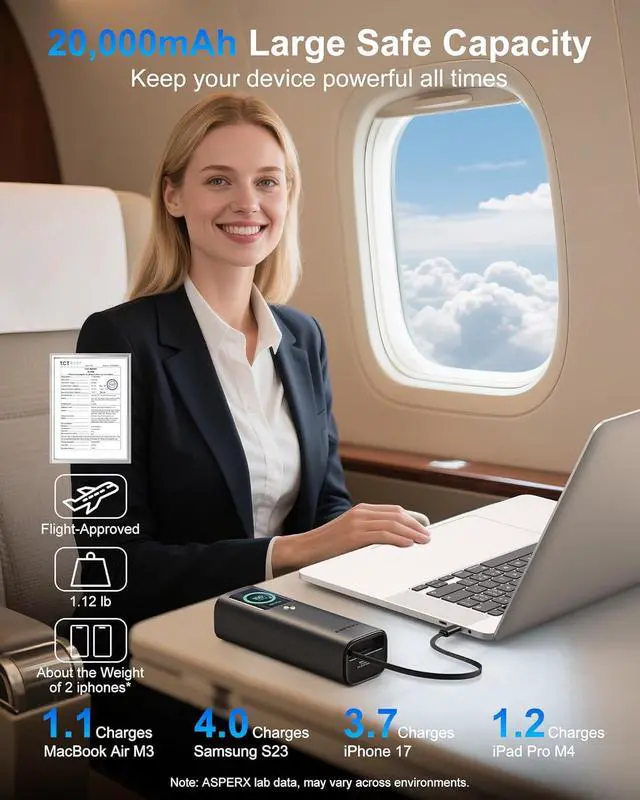 ?????????????????????????????????????????? -????????????????????????????????????: The AsperX 20000mAh Power Bankcrafted from 2 million fans' voices and 376 competitor studiesfeatures a game-changing built-in retractable cable for instant charging anywhere. No more frantic searches for cords just pull plug and power up your devices in seconds. Designed for your on-the-go life this is the hassle-free charging solution youve been waiting for. Say goodbye to tangled cables!????????????????????????????????????????????????????????????????????????: The AsperX Laptop Power Bank revolutionizes portable charging with its sleek space-saving designengineered to be 20% more compact without sacrificing performance. Perfect for professionals travelers and students.