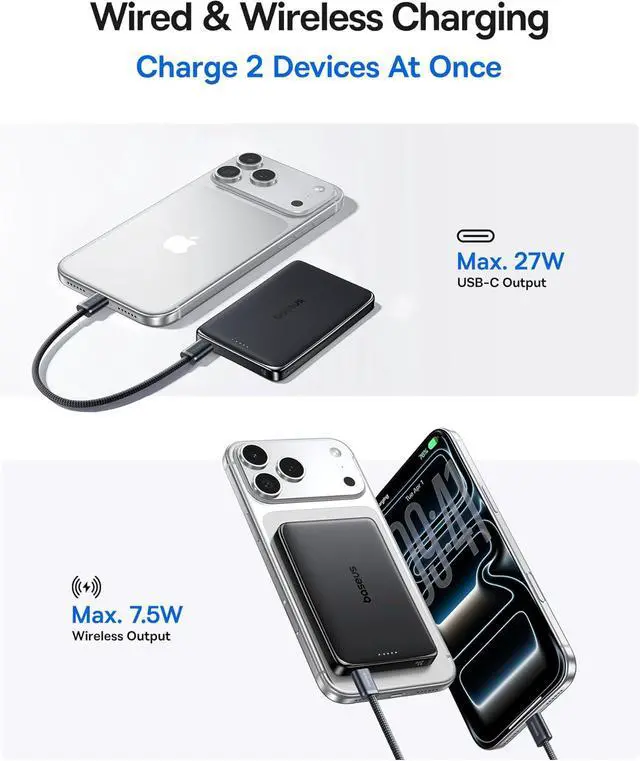 ?? 0.5 '' Ultra-Slim Profile Redefine PortabilityMeasuring just 4.0 x 2.6 x 0.5 inches and weighing a mere 6.0 ozlighter than your iPhone 17this magsafe power bank slips effortlessly into your pocket handbag or even wallet yet packs a powerful 10 000mAh battery. Its edges feature upgraded precision polishing paired with an enhanced aluminum alloy shell delivering a smoother more refined touch that elevates both feel and style.?? 27W Fast ChargingEnjoy versatile 27W wired fast charging with this magsafe portable charger. Through its USB-C port it juices up your iPhone 17 to 55% in just 30 minutesbanishing low-battery stress on the go.