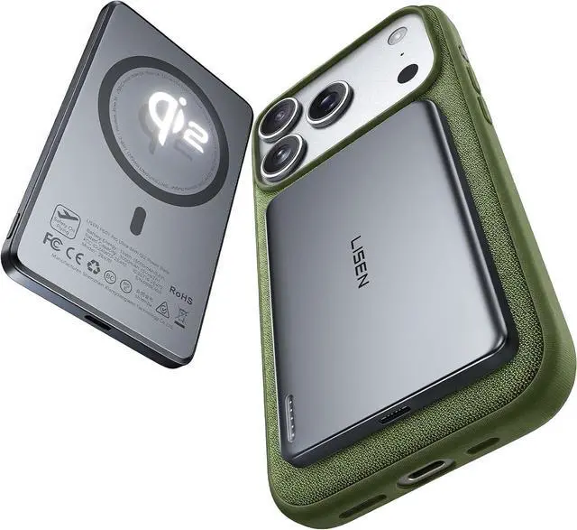 Power Bank: At just 0.38 inches thin this ultra-slim power bank offers 5 000mAh (Rated capacity: 3000mAh) of reliable wireless charging. Featuring Qi2-certified technology it significantly boosts charging efficiency while effectively addressing overheating and slow charging issues.