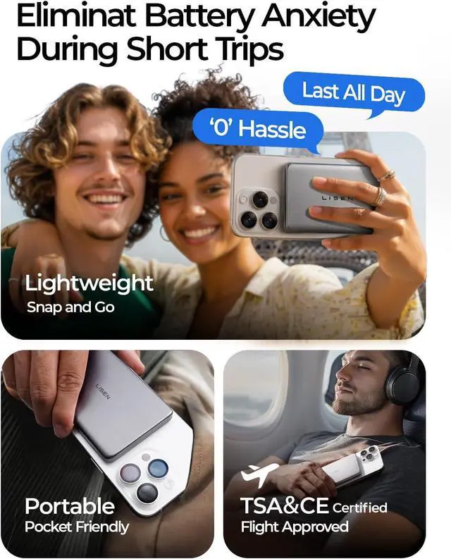 & PortableHigh Quality: LISEN magnetic power bank is just 0.38 inches thick thinner than an iPhone 17 offering mobile freedom without bulk. Keep your devices fully charged without being encumbered. LISEN Ultra Slim Power Bank has FCC UL TUV DOE CEC UN RoHS certifications to ensure the safety of use and can be freely imported into and exported from Europe and the United StatesPerfect for an