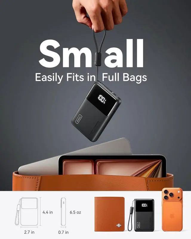 USB-C GoCord Attached: Equipped with INIU's exclusive nylon braided USB-C to C cable this cable is far more durable than plastic alternatives. Never worry about forgetting your charging cable againcharge and recharge with just one convenient cable.