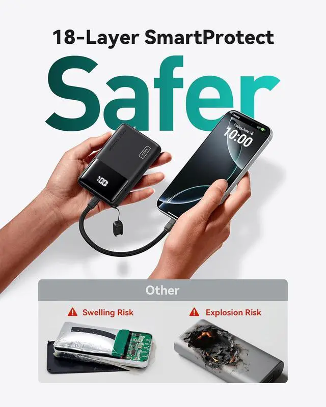 Pocket-Ready Power: The capacity of 10 000mAh is stored in an incredibly compact body that is 27% smaller and 24% lighter than its kind. You can easily take it anywhere without feeling bulky and heavy.