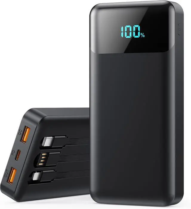 [Charge 5 Devices Simultaneously]: No more choosing which device to charge first. With 3 output ports (2x USB-A 1x USB-C) and 2 built-in cables (USB-C and iOS Output) you can power up to 5 devices at once. Dual inputs (built-in USB-A cable+USB-C port) for recharging the battery pack backup.
