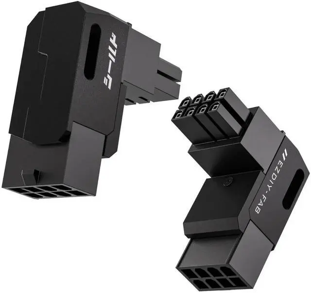 Shield Series 8-Pin PCIe GPU Power Adapter,90-Degree Angled Connector, Aluminum Design for Graphics Cards Standard Type,Black-2 Pack