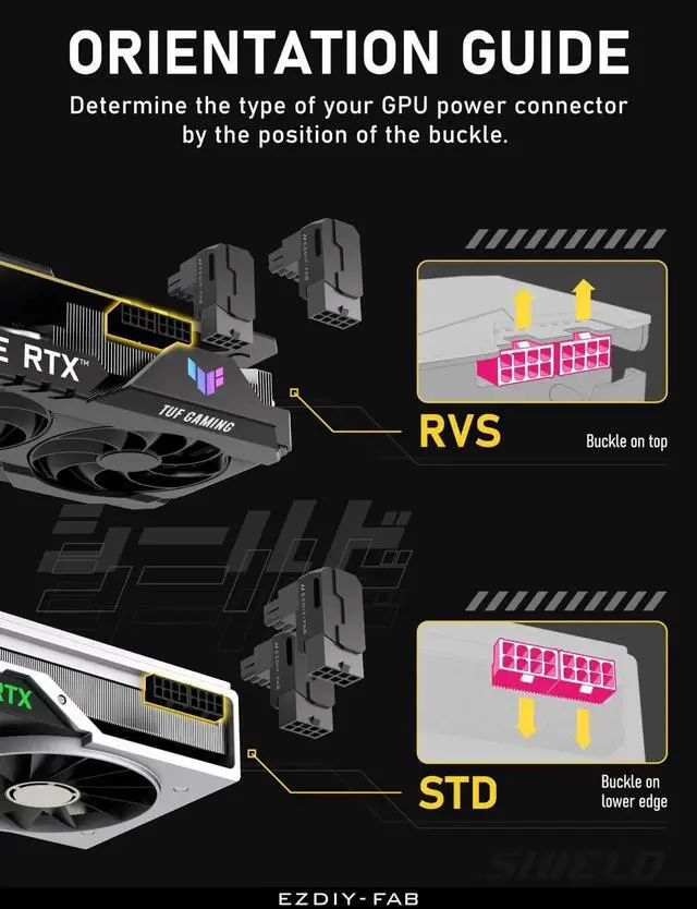 High Compatibility- Available in 90° and 180° angles, as well as STD and RVS orientations, this adapter is compatible with all NVIDIA and AMD GPUs featuring an 8-PIN power connector, and any device with a PCIe 8-PIN power connector.