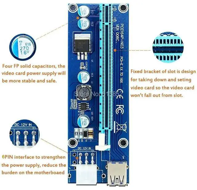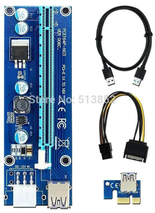 Newest VER009 USB 3.0 PCI-E Riser VER 009S Express 1X 4x 8x 16x Extender Riser Adapter Card with SATA 15pin to 6 pin Power Cable