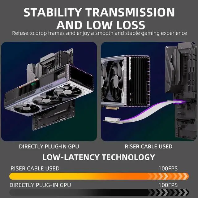 - [Plug and Play, No BIOS Setup Required]This gpu extension cable provides the great connectivity and lifespan. Featuring a unique cable protector that effectively enhances the durability of the extender as well as prevents cable damage. Install into a 16x slot on the MOBO to ensure maximum transmission speed. Also, ensure the computer power is turned off when disassembling to avoid damage to the GPU.