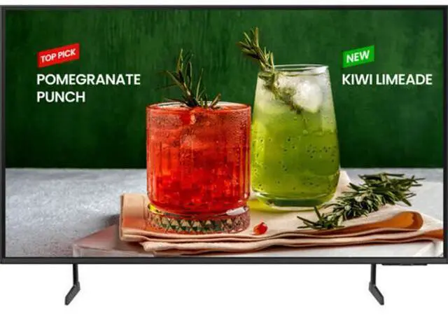 Control content using your personal device with the Samsung Business TV App on Android or iOS mobile devices. The app allows users to remotely manage, schedule, and display customized content effortlessly. It is easy to use with a variety of ready-to-use templates. The Tizen Enterprise Platform enables efficient management of multiple devices, providing all the tools for easy deployment, with integrated service infrastructure and streamlined maintenance. Samsung's video processing technology enhances every piece of content for clarity and consistency. Intelligent upscaling technology, powered by Samsung's Crystal UHD Processor 4K, elevates low-resolution video to near UHD, providing a professional picture quality.