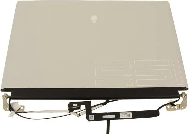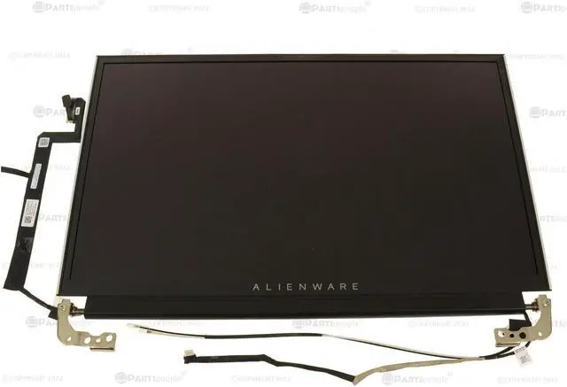 Genuine Dell original 4K LCD screen assembly for the Alienware Area-51m R2 laptop; complete with 17.3" LCD screen, hinges, and casing. This assembly includes the optional Tobii Eye hardware and UHD (4K) resolution LCD screen.