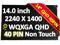 2.2K 14.0" WQXGA laptop LCD Screen B140QAN05.0/M140NWHE R1/NV140DRM-N62 40 Pin