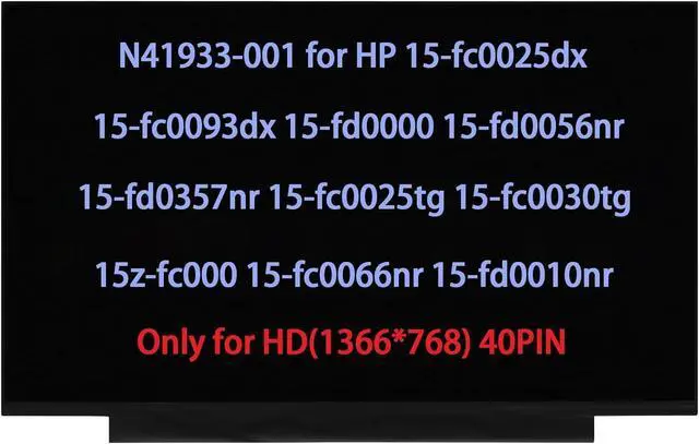 N41933-001 Screen Replacement for HP 15-fc0025dx 15-fc0093dx 15-fd0000 15-fd0056nr 15-fd0357nr 15-fc0025tg 15-fc0030tg 15z-fc000 15-fc0066nr 15-fd0010nr 15-fc0001nr LCD Display HD(1366 * 768) 40Pin
