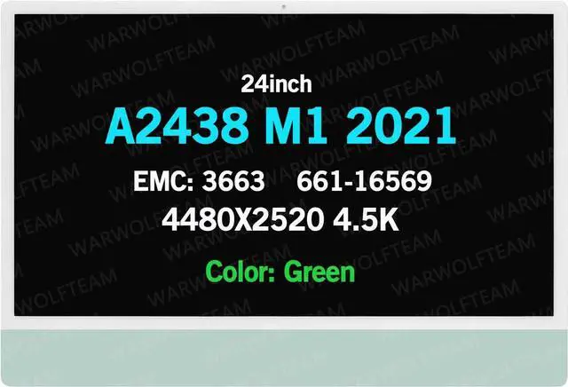 NUOLAISUN Replacement for iMac 24" A2438 M1 2021(4-Ports) EMC 3663 MGPC3xx/A MGPD3xx/A MGPF3xx/A 24inch LCD LED 4480X2520 4.5K Display Screen Digitizer Assembly 661-16575 (Green)