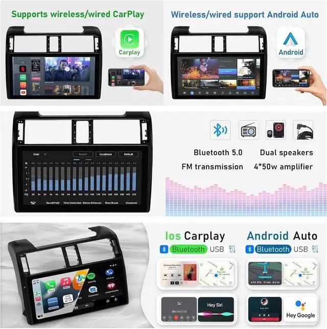 NUOLAISUN Car Stereo Radio Dash Kit for Toyota 4Runner Radio LCD Screen 2009-2022, Black Lower 12.3" Android Head Unit TS10, 4+32G, Wireless CarPlay & Android Auto, GPS Navigation, AHD Backup Camera