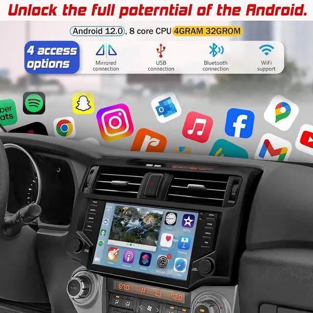 NUOLAISUN Car Stereo Radio for Toyota 4Runner Radio 2009-2022, Black, 9.0" Android Head Unit TS10, 4+32G, Wireless CarPlay & Android Auto, GPS Navigation