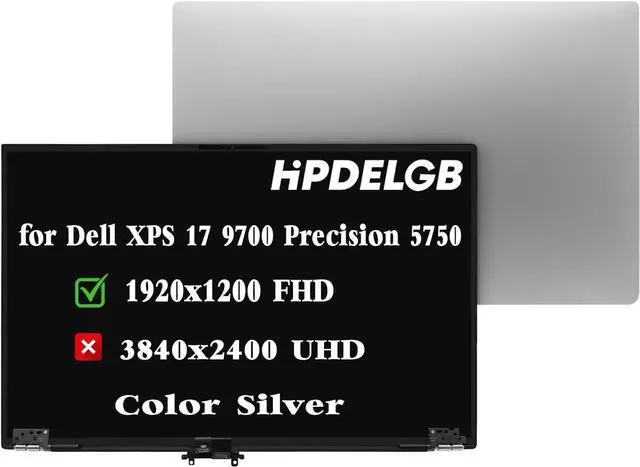 NUOLAISUN Replacement for Dell XPS 17 9700 9710 Precision 5750 5760 7JXK8 07JXK8 TC03-TVD8G 0TVD8G TB02-TVD8G LCD LED Non-Touch Screen Display Assembly Panel 17.3" 1920x1200 FHD IPS Silver