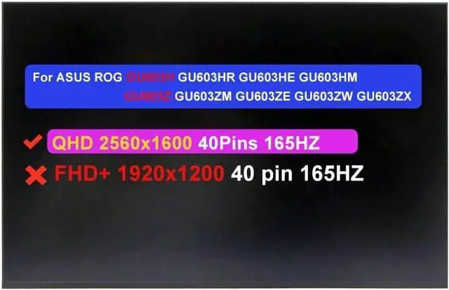 NUOLAISUN 16.0" Screen Replacement NE160QDM-NY1 / NY3 MNG007DA1-1 for ASUS ROG GU603H GU603HR GU603HE GU603HM GU603Z GU603ZM GU603ZE GU603ZW GU603ZX LCD Non-Touch Display Panel (QHD 2560 * 1600 40Pins