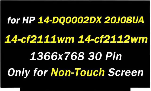 Replacement for HP 14-cf2111wm 14-cf2112wm 14-DQ0051DX 14-DQ0052DX 14-DQ0002DX 20J08UA 1366x768 60HZ 30Pin 14.0" LCD Non-Touch Screen Display Panel (for Non-Touch Screen Only)