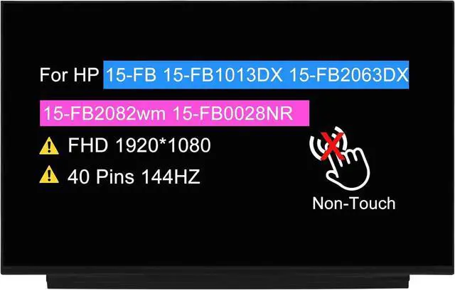 NUOLAISUN 144HZ LCD Replacement for HP 15-FB 15-FB1013DX 15-FB2063DX 15-FB2082wm 15-FB0028NR N13295-001 P/N N84474-001 Non-Touch Screen Display Panel FHD 1920 * 1080 40pins
