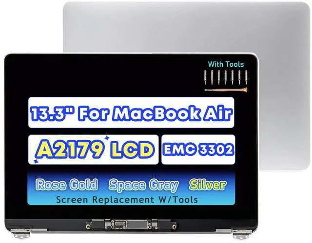 NUOLAISUN 13.3" LCD Screen Replacement for MacBook Air Retina 2020 A2179 2019 A1932 EMC 3302 LCD Display Full Assembly W/Kit (Silver)