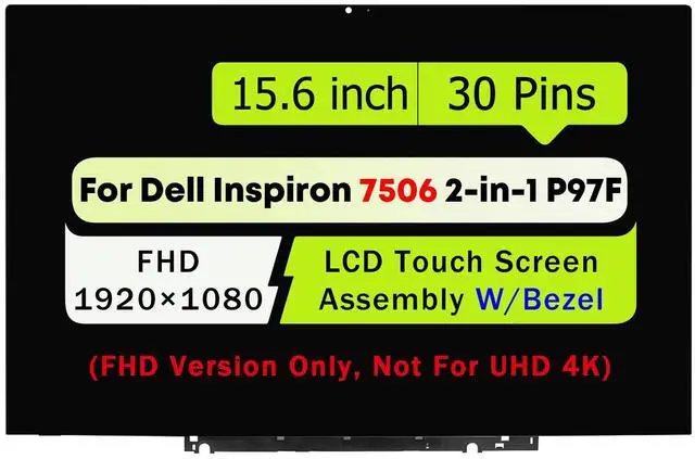 NUOLAISUN Screen Replacement 15.6" for Dell Inspiron 15 7506 2-in-1 P97F P97F003 P97F005 IPS LCD Display Touch Screen Digitizer Assembly with Bezel (FHD 1920x1080-30Pin Connector)