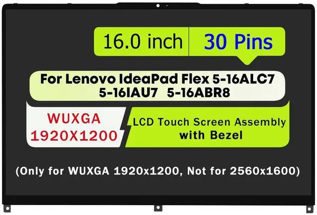 5D10S39793 5D10S39792 5D10S39794 Screen Replacement 16.0" for Lenovo IdeaPad Flex 5 5-16ALC7 5-16IAU7 5-16ABR8 5-16IRU8 Type 82R8 82RA 82XY 82Y1 30 Pins WUXGA 1920x1200 LCD Display Touch Assembly