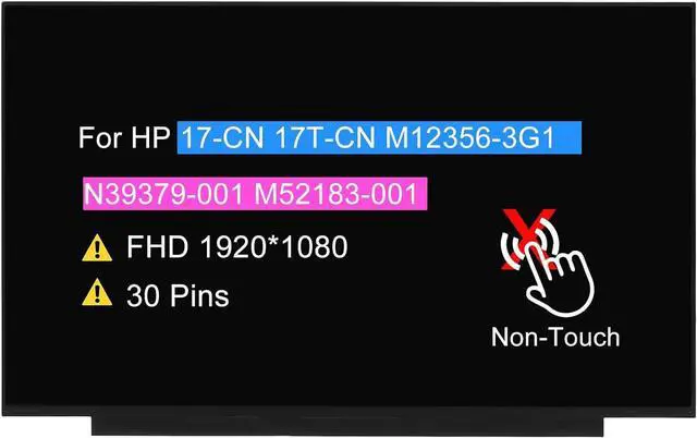17.3" LCD Screen Replacement for HP 17-CN 17T-CN 17-CN0023DX 17-CN0033DX 17-CN2083DX 17-CN2068CL 17-CN3053CL 17-CN1053CL 17-CN2070CL N39379-001 M52183-001 M12356-3G1 Non-Touch Display FHD 30 pins