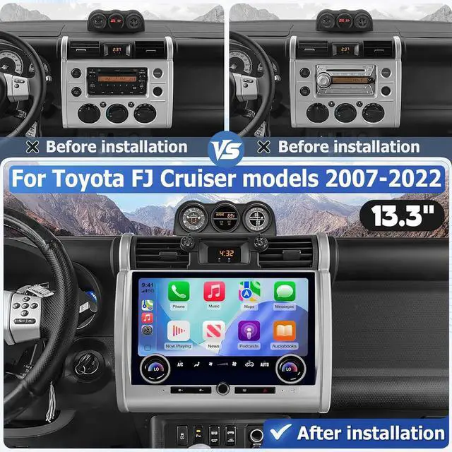 Car Radio Replacement for Toyota FJ Cruiser 2007-2022 Radio Stereo Upgrade 13.3 Inch Touch Screen with Wireless CarPlay & Android Auto, DSP GPS Navigation
