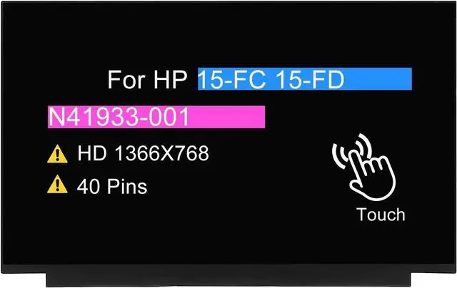 15.6" LCD Touch Screen Replacement for HP 15-FC 15-FD 15-FC0XXX 15-FD0XXX 15-FD0023DX 15-FD0213NR 15-FD0005DX 15-FC0025DX PN N41933-001 HD 1366x768 40 pin