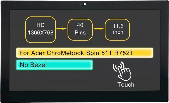Screen Replacement Digitizer Assembly for Acer ChroMebook Spin 511 R752TN-C2J5 11.6" LCD On-Cell Touch Display Panel 40 pin HD 1366 * 768 with Bezel