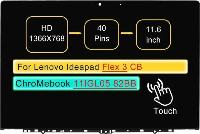 Screen Replacement Digitizer Assembly for Lenovo Ideapad Flex 3 CB 11IGL05 82BB 82BB0008US 11.6" LCD On-Cell Touch Display Panel 40 pin HD 1366 * 768 with Bezel