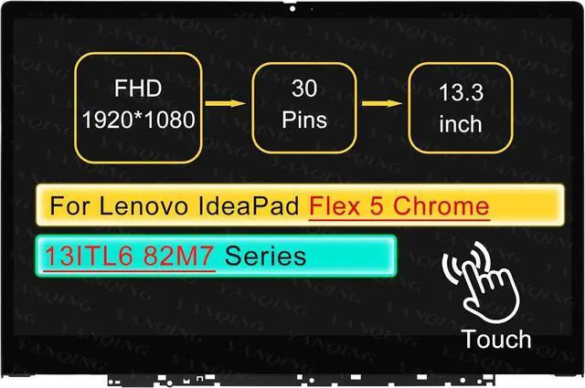 13.3" LCD Touch Screen Replacement Digitizer Assembly for Lenovo IP Flex 5 Chrome 13ITL6 82M7 Series with Bezel 30 pin (FHD 1920X1080 On-Cell Touch)