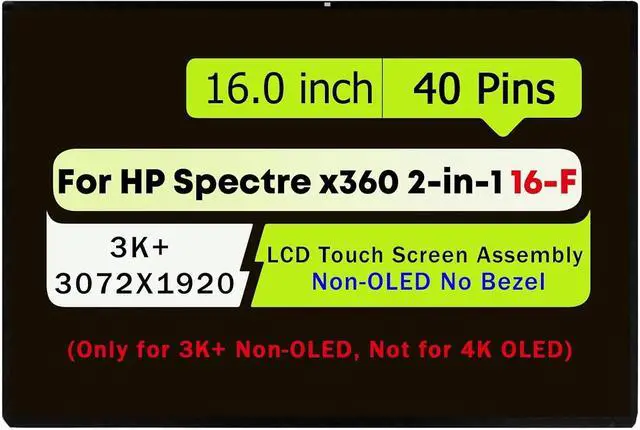 16.0" LCD Screen Assembly for HP Spectre x360 2-in-1 16-f 16t-f 16-F0013DX 16-f1013dx 16-f2013dx M83490-001 3K+ 40pin 3072 x 1920 Digitizer