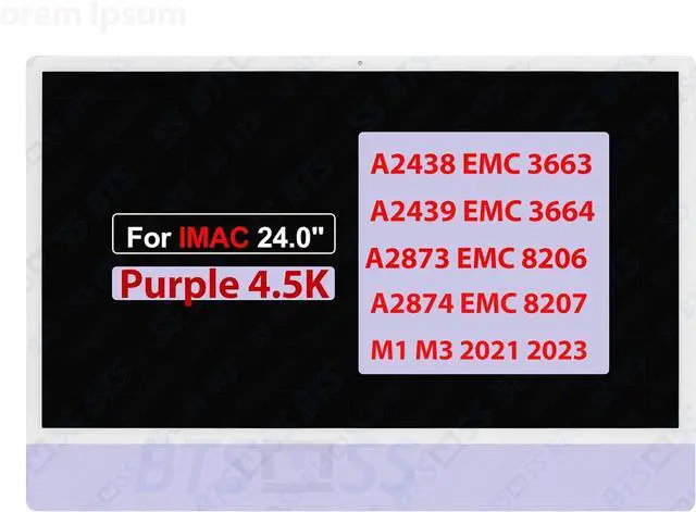 24.0" Screen Replacement LM235UH1(SD)(A2) for iMac A2438 A2439 A2873 A2874 M1 M3 2021 2023 EMC 3663 EMC 3664 EMC 8206 EMC 8207 661-16575 661-35887 4.5K LCD Display Digitizer Assembly (Purple)
