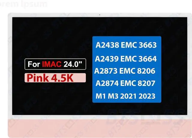 24.0" Screen Replacement for iMac A2438 A2439 A2873 A2874 M1 M3 2021 2023 EMC 3663 EMC 3664 EMC 8206 EMC 8207 661-16573 661-35878 4.5K LCD Display Digitizer Assembly (Pink)