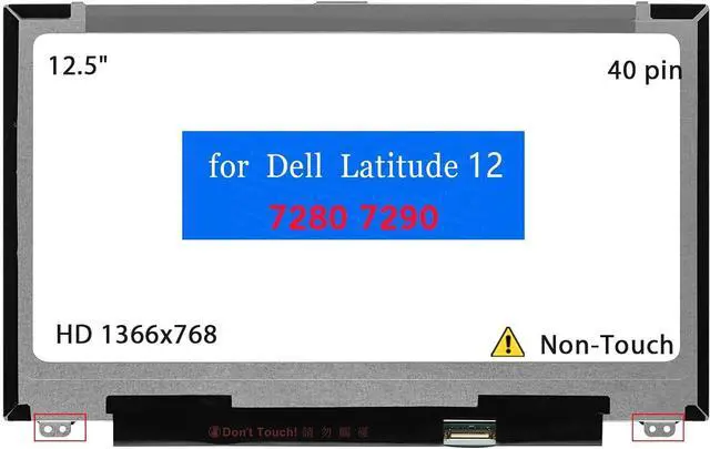 12.5" Screen Replacement for Dell Latitude 12 7280 7290 LCD Display Panel 40 pin (HD 1366x768 Non-Touch)