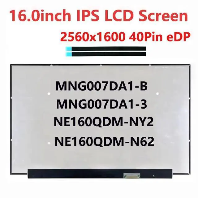 • 16.0 Laptop LCD Screen NE160QDM-N62 NE160QDM-NY2 MNG007DA1-3 MNG007DA1-B QHD 2560x1600 eDP 40pins Display Panel