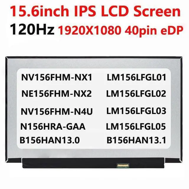 • 15.6 inch 120Hz Laptop LCD Screen NV156FHM-NX2 NX1 N4U LM156LFGL01 02 03 05 N156HRA-GAA B156HAN13.1 B156HAN13.0 1920x1080 Display Panel