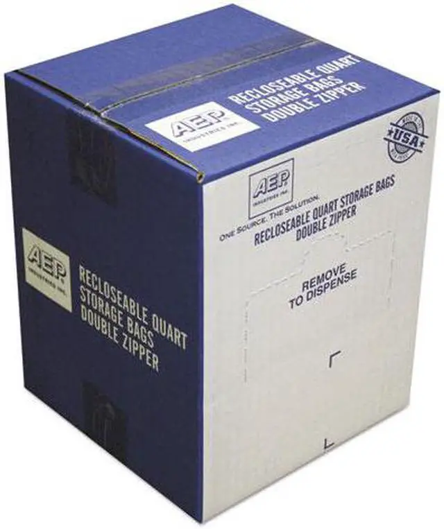 Zipper closure creates a superior seal. Grip strips make bags easy to open and close. Convenient dispenser box. Application: Storage; Capacity Range (Volume) [Max]: 1 qt; Thickness: 1.75 mil; Material(s): Plastic.