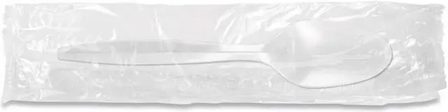 Individually wrapped for sanitary, on-the-go dining. Mediumweight polypropylene construction resists breaking and cracking. Sturdy enough to reuse. Utensils Type: Spoon; Material(s): Polypropylene; Color(s): White; Grade: Mediumweight.