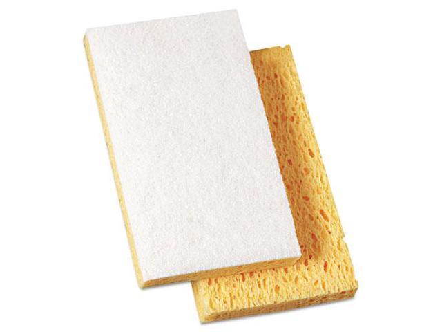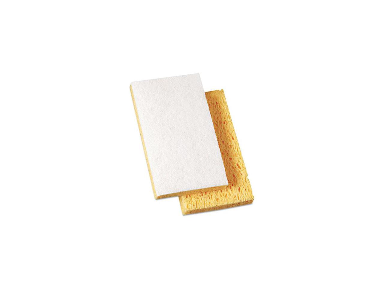 Absorbent cellulose sponge on one side, medium-duty nylon scrubber on the other. Ideal for cleaning ceramic fixtures and other kitchen and bath surfaces.
